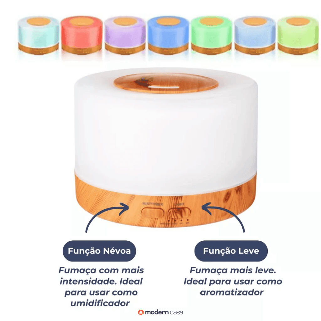 • Funções: Difusor de óleos essenciais, aromatizador de aromas (com uso de essências aromáticas) e umidificador de ar