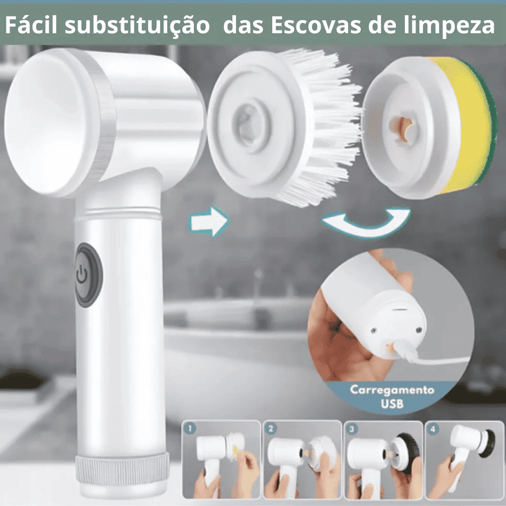 Limpeza sem esforço com economia de tempo - Escova Elétrica Multiuso 5 em 1 para Limpeza 360º