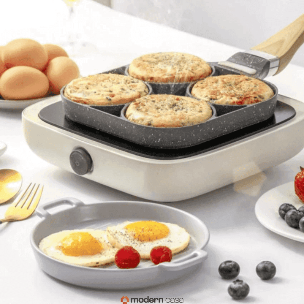 Você pode fritar quatro ovos ou hambúrgueres com diferentes sabores ao mesmo tempo ou fritar quatro alimentos diferentes. Esta é eficiente em energia e atende às necessidades diárias do café da manhã das famílias.
