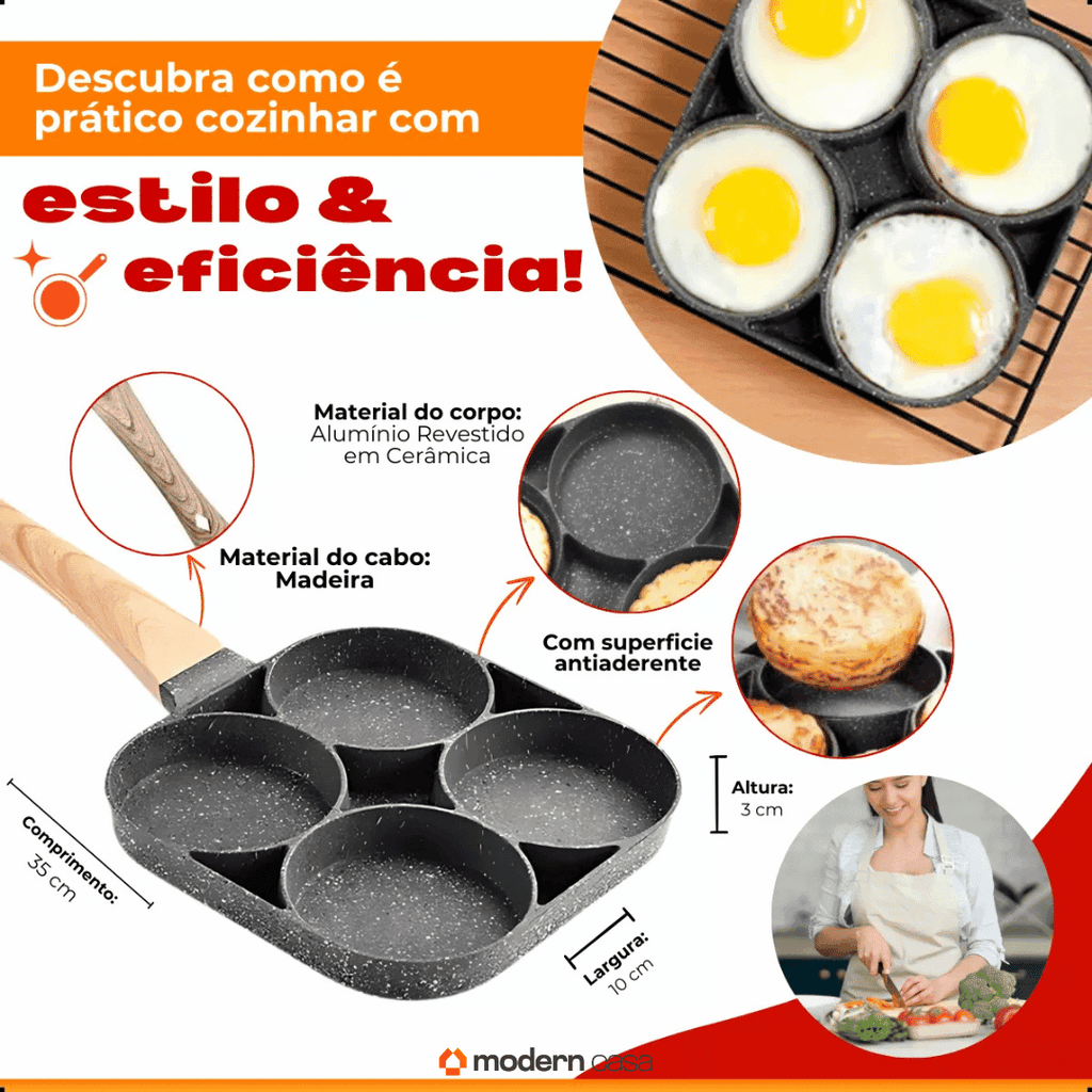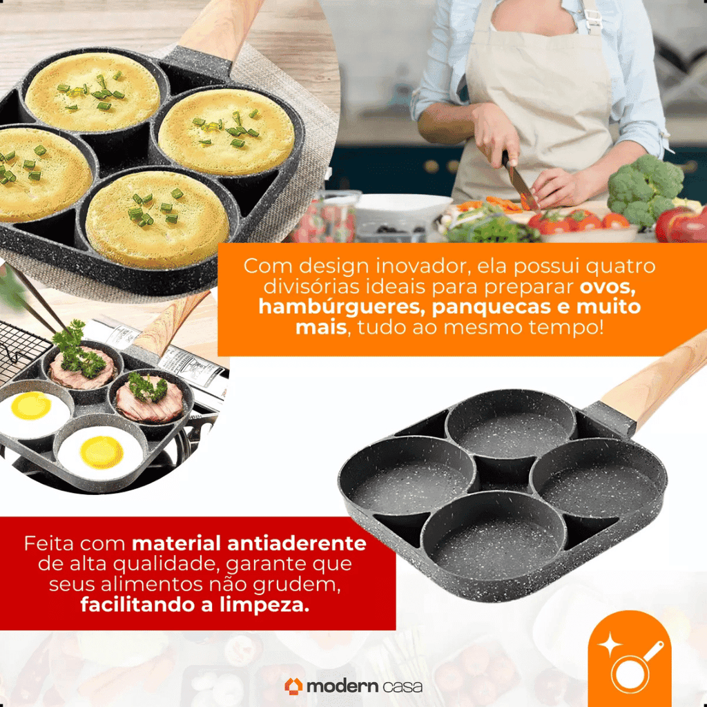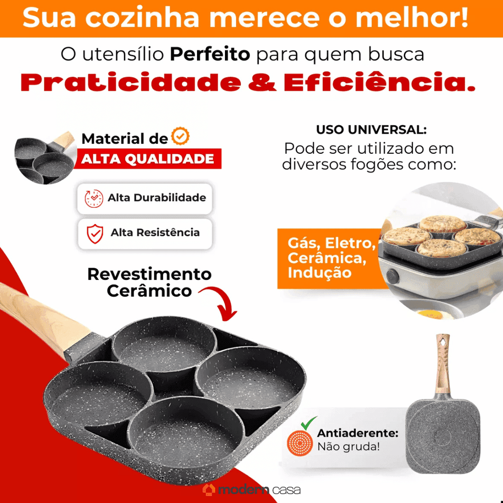 A Frigideira Antiaderente 4 em 1 possui o material ideal, que é caracterizado pelo revestimento antiaderente da pedra Maifan.