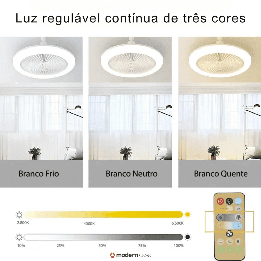 Com design multifuncional, este dispositivo combina a eficiência energética da tecnologia LED com a conveniência de um ventilador integrado, proporcionando iluminação ajustável e ventilação suave para manter qualquer ambiente agradável.