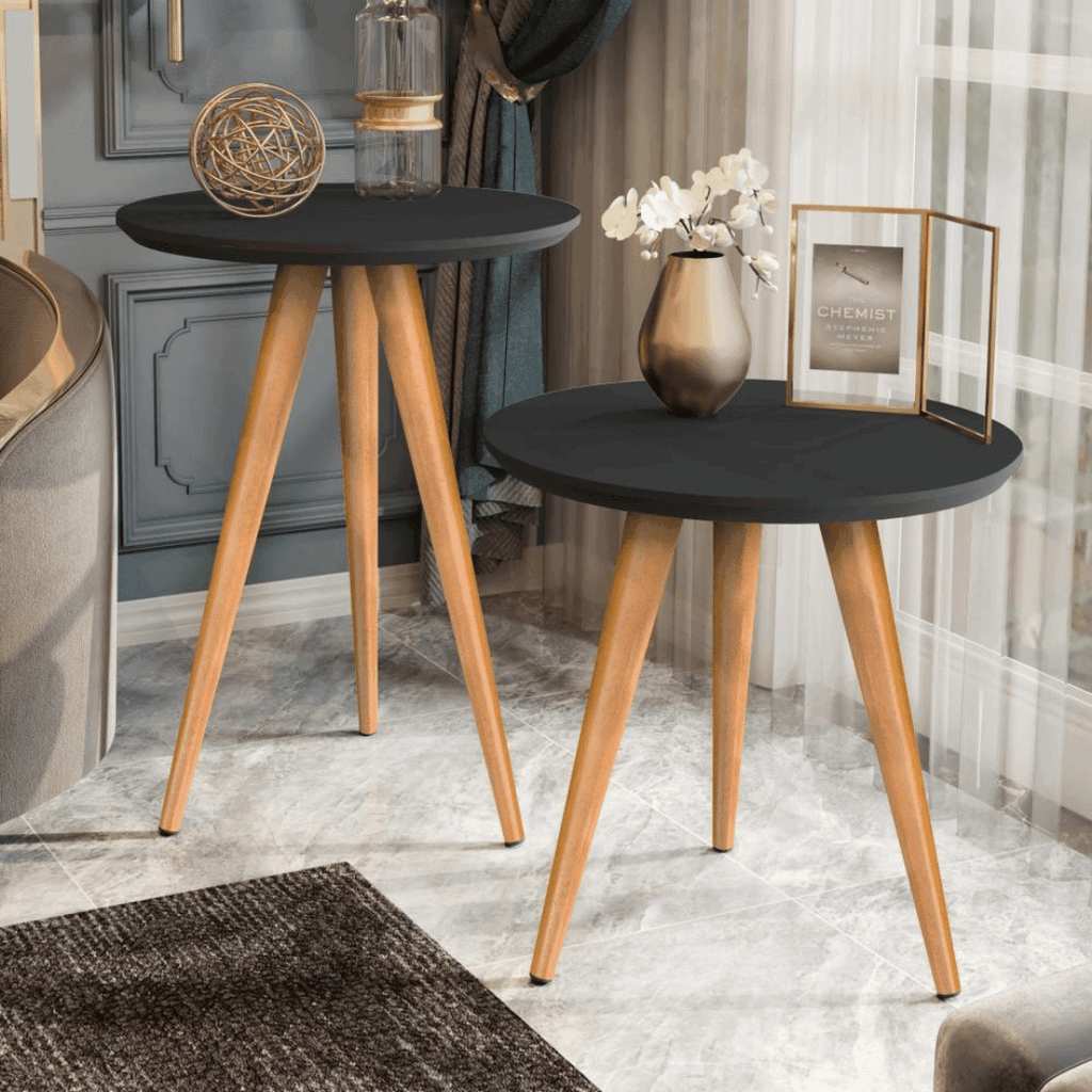 ✔ Design sofisticado – Pés em madeira com acabamento industrial e tampo em MDF, ideal para apoiar livros, plantas e objetos decorativos.